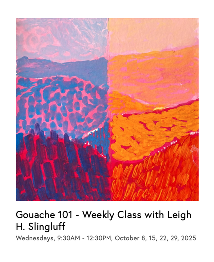 Gouache is a versatile, opaque watercolor paint that dries to a velvety mat finish and can be reactivated after drying. Learn step by step how to enjoy this fun and popular medium through easy-to-follow sketchbook exercises, demonstrations, and one-on-one guidance. No painting experience needed—just bring your supplies and start your gouache adventure!